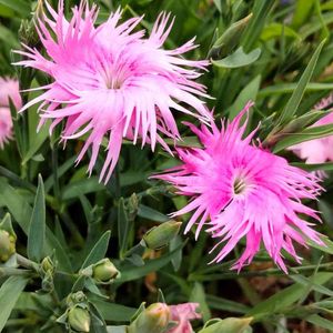 ダイアンサス スープラ 花の色合いとカッコイイ 形に惹かれて秋に購入 カワラナデシコ系交配なのかな? 春からまた咲き始めてくれました 鮮やかなピンクでとても綺麗です 宿根草は毎年芽を出し咲いてくれる からうれしいですね これからまだまだ咲いてくれそうです(*^_^*)