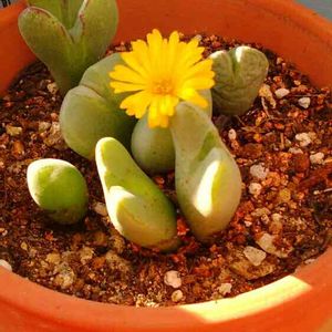 昨年ダイソーで見つけてきたコノフィツム。 今年は、しわしわになったり脱皮をしてくれたりいろいろな姿を見せてくれました そしてなんとお花まで咲かせてくれました 可愛い黄色の花🎵 種類はわからないですが、コノフィツムは初めて育てたので、いろいろな発見がありました🎵 ダイソーで見つけた方達のコノフィツムはその後どうなったのかな? 違う色の花が咲いたりしたのかな?