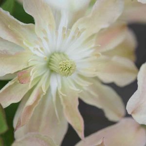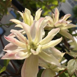 モンタナ系のクレマチス、雪の華。 咲き始めはグリーンっぽい白色。