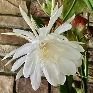 今日のお花*ゲッカビジン 一夜だけ咲き朝にはしぼむ神秘的な白い花、儚い美しさは胸に沁みマス♡ 《スライドpic》 ①やや俯き加減のとびきり美人さん (以前の出会いから) ②朝、萎んだ姿… 10/12日、駆けつけた公園温室では既に宴は終わってイマシタ😢マタミタイナァ。