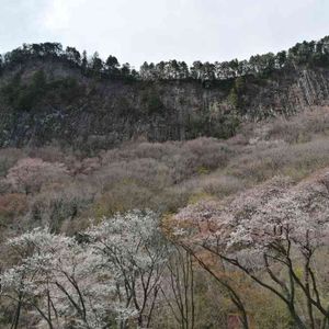 屏風岩と山桜 いつ見ても圧倒される屏風岩。 樹齢100年を超える山桜も とても写真におさまりきれませんね。