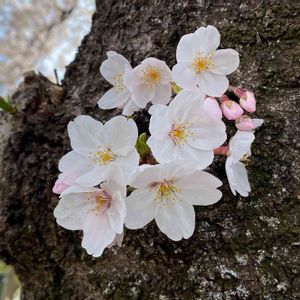 ❀.* 老木っぽい木の幹から 可愛い桜の花が咲いています🌸🌸 ٭❀*桜吹雪も素敵です〜(*´˘`*)♡ 火曜日☽︎︎.*·̩͙おやっとさぁ☆彡.