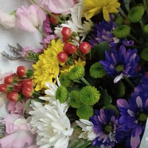 昨日のお墓用のお花💐 カラフルになりました😄 ブルーと黄色入ってるから。。 付けちゃいます( *´艸`) 🏷️(祝)チーム・ブルー20000pic 🏷️日曜ビタミンカラー♪