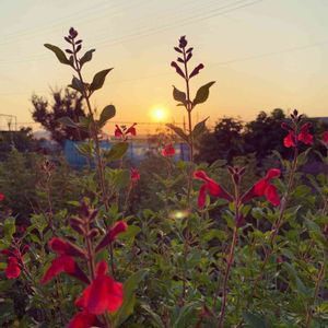 夕陽とチェリーセージ 暑くなって来ましたね。 今日もお疲れ様でした。