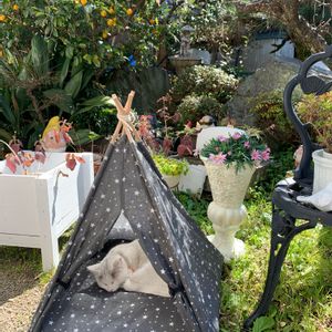 庭のニャン💕ニャンは暑くなるとテントに入ります💕乙女は日焼けしちゃいけないニャン💕色白美猫目指しますニャン🏷ニャンニャン祭り その2 参加させてください