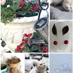 ニャンは雪の中で元気いっぱいです❄️クイズ、ニャンをみつけてください❄️白ネコニャンは雪と同化しています❄️