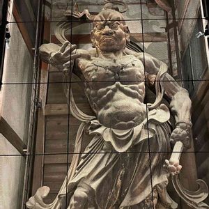 『なら瑠璃絵』23 東大寺南大門です。 いろいろ興味は持つけど 詳しくは知らない私😅 さぼてん🌵ネコ🐱の家来に 「誰なん?これ👆」と訊きました。 そしたらば、目の前にいたおじさんが 私の顔をまじまじと見つめ (なんも知らんやっちゃなぁ〜と思われたと思う💦) 「これはね 金剛力士像と言って、寄木造りで作られ、 わずか69日間で造られたんですよ。 これは、口を開いた阿形像。 宇宙の始まりを表しています。」 と説明を始めてくれました。 「へぇぇぇ〜」 「なるほどーー!」 とか言いながら、スマホにメモ📝る私。