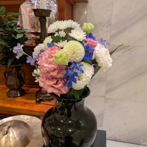 今日は母の祥月命日です。 もう3年経ちました。 かわいい物が好きな母だったので、かわいいお花のブーケを選んで、母の花瓶に飾りました。 仏花らしくはないですね💦 父は目が不自由で、足元がおぼつかないので、階段の多いお墓に行くのが躊躇われ、実家で母を偲び、感謝と冥福を祈りました🙏