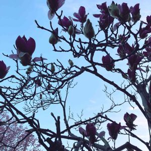 昨日お散歩中に見つけた紫木蓮。 白木蓮も良いですが紫木蓮もまた良いです。 木蓮は空に向かって咲くところ、早春に咲くところ、パッと散ってしまうところがとても好きです。思い出の花。見かけるたび胸がキュッと痛む花です。