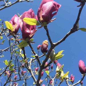 シモクレン(紫木蓮) 我が家のシモクレン💜開花しました🤗 同じ庭でも💐ハクモクレン☁️は3月14日頃開花🤗 我が家のシモクレンは約1ケ月開花が遅いです💜