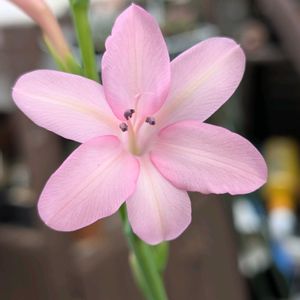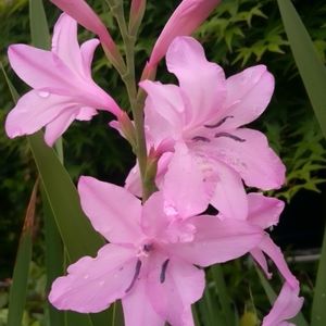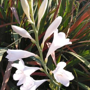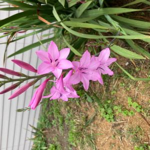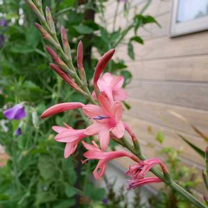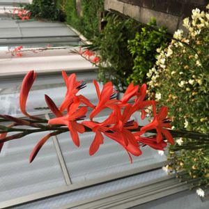 母から分けてもらった花 実家の庭に咲いていて綺麗だねと言ったら母が持って行く? 花好きは母譲りかな! 名前も知らず庭に植え 枯れてしまったと思っていたが翌年 葉が出てびっくり 2年かかって やっと今年咲いた 正直 どんな花だったか忘れてた〜 Googleで検索してワトソニアと判明