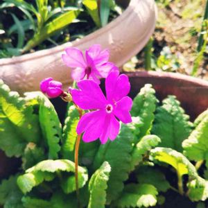 アブチロン、頂きもので、花初めて見るので楽しみです。どんな花かな❓ 宿根さくら草も、蕾がでました。
