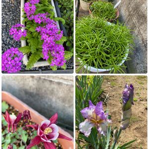 ↖️宿根サクラソウが満開に。折り返しでそろそろ終わりに近づいている。 ↙️今年も何とか消えずに咲いてくれた、西洋オダマキさん。 ↗️まかろんちゃんに頂いたクサハナビ。 増えたよぉーー❣️4鉢になりました。 ↘️今年最初に咲いたジャーマンアイリス。次は、何色かなぁ〜💞