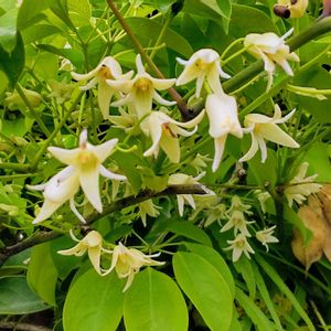 こんばんは♪ 今日のお花 ムベ(郁子) ①② ムベのお花 今年は近くで咲いてると教えて貰い、お花は初めて見る事ができました🌱 4/25のpicです ③④ 9/25には立派な果実ができていました🌱 こんなに大きな木が、3本もあるお宅です🌱 ⑤ 10/23には果実が色づいていました🌱 その後行けてないけど、美味しく熟しているだろうな~😋
