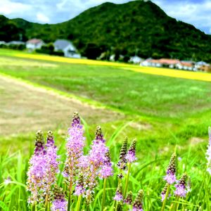 朝の散歩道 問田川の土手から、 畑のコスモスの花🌸を撮りました。