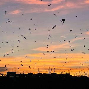 先程の投稿の続き 夕焼けも綺麗になってきました🤗 ツバメちゃん 6月に行ったときは 3万羽くらいでしたが この春に生まれたツバメちゃんも ここで眠るため 今は 6万羽くらいになっています🥰 19時半くらいには 飛び交っていたツバメちゃんも みんな眠りにつきます。