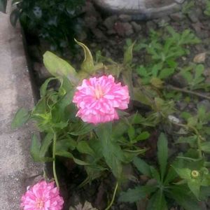 どこからか種が飛んできて咲いてます♪ 八重の百日草は植えたおぼえないし^^; でも、綺麗だからいいや!