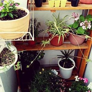 設計図も無く感覚で作った即席日よけ棚。 作ったは良いが植物達は全て直置き… 余りにもみっともないのでスノコを切ってまたしても即席花台の製作をしてみました。 前の散らかり放題より少しは整頓されましたね〜😁 重い腰を上げたのは最近、家の前を通るおば様達から良く声を掛けられて『見られてる感』が強く感じ始めたからなんですよねー 名前も知らない近所のおば様達が最近の話相手です😜💕