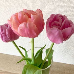 外は真冬の寒さですが、可愛いチューリップのおかげでリビングが春めいて嬉しいです。