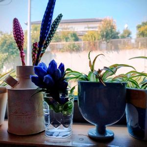 先日寄せ植えしたけど ①伸びたビオラを切り戻しました ②小さなビンに挿し窓辺で遊ぶ♪ ⑤寄せた直後ビオラ伸びてクッタリ これは迷わずカットでした✂️ 左側のビオラ恋うさぎもカットして ビオラ2株は花待ちです♡