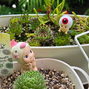 こんにちわ🥰 今日は曇って居ますがムシムシジメジメ~😫気分も落ちますね💦 🌴箱庭が徒長しているので直そうかな~と虹の玉触ったらポロポロ落ち😵他の多肉さんもポロット〰️😣ペコちゃんとお花ピータン置いて🤳だけで😅 2枚目 🐳に乗ったオヤジおぼうぼピータンは大海原へ~🌊😆オチナイデネ~ 🏷️十二の巻 🏷️ちょこんとピータン 🏷️オヤジ活 参加させて頂きます✨😌✨