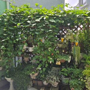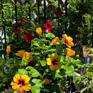 こんにちは🥰 アブチロン❣️💛チロリアンランプ可愛いですね🥰 そしてとても強い子で日陰を作り下に葉っぱ🌱🌿系を置いて守ってくれてます🥰 小さい庭なので伸びたら纏めたりチョコチョコ切ったりしてます🤭 今日も良い1日で🥰