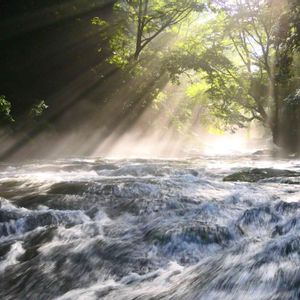 お花でなく、ごめんなさい😢 菊池渓谷の早朝、光芒です🎵