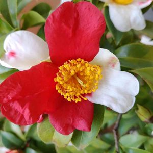椿・令和物語 茶化の女王編 三十二頁 桐谷絞り 朱紅色に白斑が入り 華やかな感じですね(^^) 2022/03 上旬