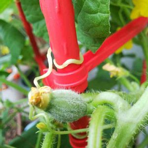 今日のミニトマト🍅アイコです。 円形支柱の外側に、幹を這わせて リボンで縛っています。 まだ、枝がしなるので わりと簡単、葉を折らないように 慎重に〜慎重にね。 💛花が咲き出しました。 アイコさんは、真っ直ぐに 成長させてもらえないから ストレスかもね😅 脇芽は、見つけたら取り去っています。