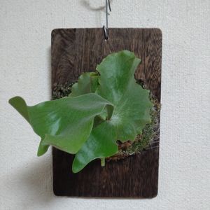 今日はビカクの仕立て直しを頑張った この子は成長点が飛び出して来たので仕立て直し 前の板は劣化していたので同じ大きさの杉板に付け替え とりあえず水苔で成長点を埋めるように仕立て直したけど なんだこの貯水葉!形が独特でどうしたらいいか分からん😂