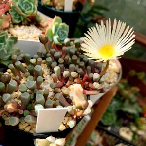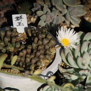9月のロハスでお迎えした 群玉のお花が咲いた〜🌸 3個も〜❤️ 何年かウチにいる五十鈴玉 は蕾すら見えない💦 どうやら… 群玉のお花は白で、 五十鈴玉のお花は黄色❓