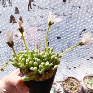 寒くなりましたねぇ💦 昨夜は 毛布追加しました(笑) フェネストラリア 群玉 咲いてました💕 なんと、ダイソー産です😅
