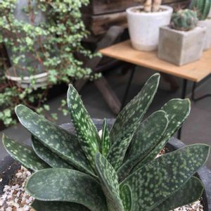 部屋とガステリアと私 その① もともと私が20後半になってどっぷりと植物の世界に足を踏み入れるきっかけとなったのが「ガステリア」なんですね。 いまでこそサボテンやら食虫やらやってますが、本で見たガステリアに一目惚れしたのが始まりです。 ってなわけで、今でもガステリアを見ると、ついつい狩ってしまうのですが。。。笑 虎の巻の子株がすごかったので、休日を利用して株分けしました。 久しぶりの多肉植えかえだったので、上手く中心に植えられず。。。笑 でもかわいくできましたね。笑 皆さんも思い出の植物がいますか?
