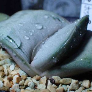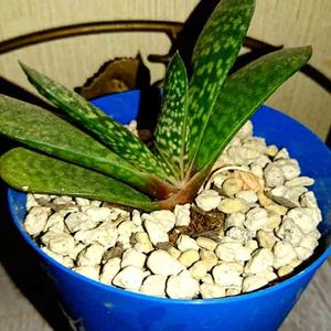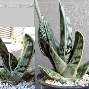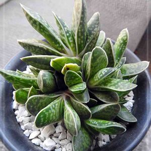ガステリア・富士の白雪。ネットで見たのよりは緑が多い感jじだけど、白さと質感がいい感じ。我が家にやってきたころと比べると葉が増えてる。生長が遅いと聞いているけど、そうでもないと思う。