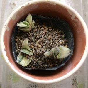こちらもお手頃価格のガステリア。2つ仲良く並んでいたのをわけわけ。 ガステリアって耐寒性ないのね。夏型コーナーに置かなくちゃ。