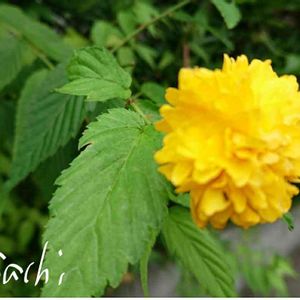 カフェのお庭に咲いてました。 八重咲きのヤマブキ(黄色)