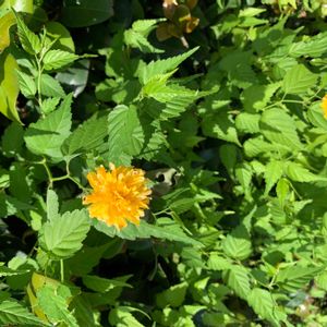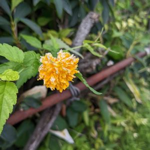 花が一輪だけ見られました。 八重咲きヤマブキ 横浜市田奈あたり。 2022年7月20日撮影