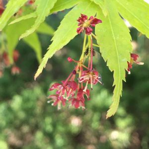 今日のお花 紅葉🌳 昨年3月 モミジに赤い花が咲いてました。 新緑とちいさな赤い花のコントラストが綺麗でした💚❤️