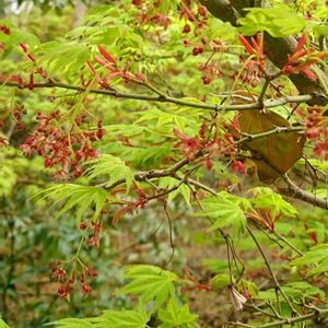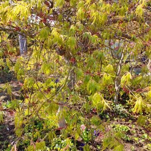 春モミジ③ 大盃 丹波市に10年ほど前から趣味でたくさんのモミジを集めておられる方がいて、杉林を切り開いた斜面に植えられた360種570本のモミジは各々に美しい🍁モミジは接ぎ木しない限り、親木とは葉の色も形も少しずつ違うので、品種名は育種家次第と教えていただく(^.^) で、私のベストはこの大盃⤴️