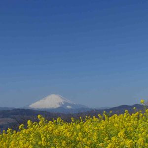 富士と菜の花 絶壁階段をヘロヘロになりながら登りつめると、この景色が見られます。 春真っ盛りと勘違いしそうな湘南の公園。