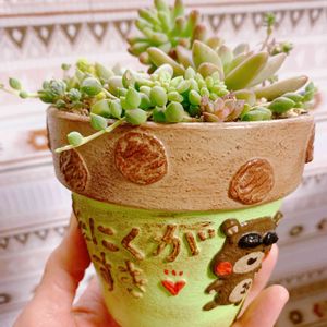🪴 @flower___loop さんのベリーさんをリメ鉢にIN✨ @korochat さんのまゆげくまさん鉢に寄せ植えしたよ💕 🪴 ベリーさんはぽってりしていて土に入れて暖かそう😁 まゆげくまさん、お腹空いているみたいだから、こんもりとはいかなかったけど、多肉ちゃんを入れてあげました😆 お腹いっぱいになったかな😁 🪴 #多肉植物 #寄せ植え #リメ鉢