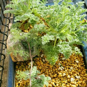 「パールグレイ!生きとったんかい、ワレ❗」 正式名称クインクエ-ロバツム 春に播種して、一個も発芽しなかった種子。 同じポットに、ペラルゴニウム ドロミチクムを蒔いて、10株発芽した中に葉の形が違う株が一つ。 株立ちが似ていて、種子をいただいたお家の交配種だと思っていましたが、同時期に発芽していたみたいですね😅 花が咲いて、花と葉の形が一致したので、パールグレイに確定です!