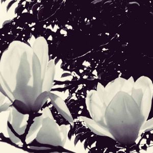 今日の花 白木蓮 グレースケリー画像 いたずらしたら白木蓮の白が透けて良い感じの花弁が強調されました。