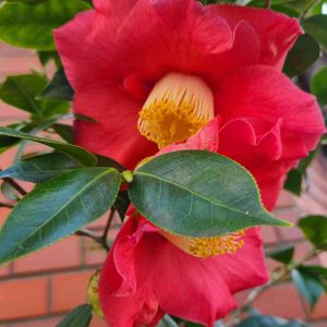 おはようございます😊 散歩🚶♀️で出会った 真っ赤な椿(品種は解らない) 夫婦かなぁ、姉妹かなぁ寄り沿った姿が美しい🎶💓😍