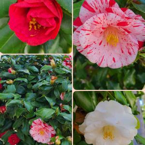 一本のツバキの枝に 三種のツバキ(ノ゚∀゚)ノ 散歩🚶♀️何時も気になります今日は来年も綺麗な姿を見せてと願いを込めパシャリ🎶😍🙏