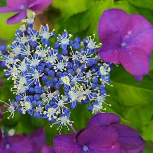 おはようございます☺️ ガクアジサイ 真花(しんか) アジサイの本当の花を言います キラキラ星の様に 綺麗なところを見せてくれてます。バシャリ 朝の散歩🚶♀️時より