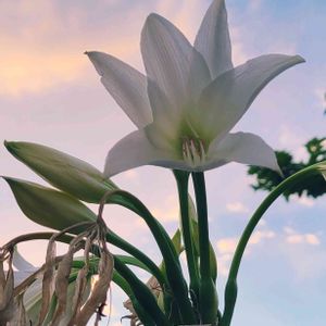 おはようございます😊 [アフリカハマユウ] ヒガンバナ科 ヒメノカリス属 花言葉「どこか遠くへ、あなたを信じます、汚れがない」 大きな白いテッポウユリに似てます 朝の散歩🚶♀️時に😵🌀 綺麗でした☺️