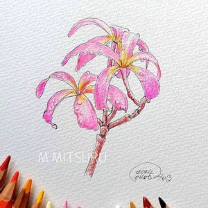 20240406 今日の一枚(#1306) aquamarineさんが投稿された スコールが去った後の花弁がスリムな プルメリア