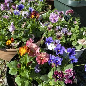 松阪フラワーセンターお迎え記録④ ↗️ルピナス 天までとどけ 毎年、松フラで購入しています💕 ↘️プリムラジュリアン 明るい黄色🌼の花、元気がでます😊 ⬅️右の購入品に、家🏠にポットのままおいていたピンクのジュリアンとビオラたちを一緒にinして寄せ植えにしました💕