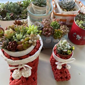 クリスマス月間🎄に入り、寄せ植えもクリスマスバージョン💕 みちゃさんの綺麗なクリスマスリメ鉢に寄せ植えしました。 昨日の夕方、思い立って作ったので、多肉ちゃんたち、ビニール温室や不織布してない丈夫な普及種が多め😊 それでも、紅葉🍁してる子入ると可愛さ倍増だね😊 レティジア 姫秋麗 秋麗 プレリンゼ マッコス ブロウメアナ グリーンネックレスなどなど 🏷️クリスマス月間 🏷️GSの繋がりに感謝♡